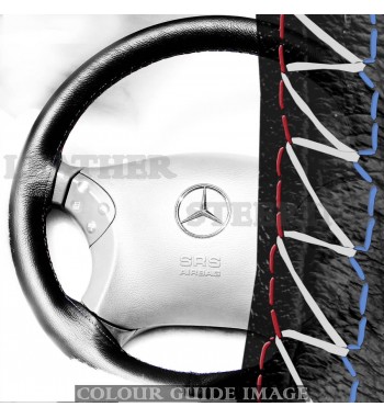 Mercedes-Benz Klasa C W203 C180 - C350 CDI/CGI Compressor/4Matic Skórzany pokrowiec kierownicy – Czarny z Czerwono-Niebieskim szwem – Czarna nić.
